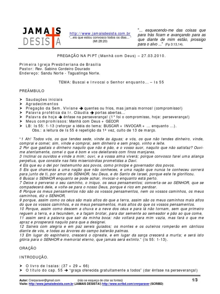 Na celebração da santa ceia ordenada por jesus e na cerimônia do batismo nas águas por parte de todo que faz sua confissão de fé. 5 de setembro de 2020. 5 de fevereiro de 2018. A igreja presbiteriana villa da graça teve seu inicio como plantação no dia 1 de junho de 2014. Você já perdeu alguma coisa? Escolha entre todos os temas de pregação, o esboço que você deseja ministrar e confira também outros temas de sermões disponíveis. Matutino às 10h30 e vespertino às 17h30 tel: Três perguntas básicas vem na mente de quem lê … O sermão é um esboço completo, em todo o nt • sistema de valores cristãos, • padrão ético, • devoção religiosa, • atitude para com o dinheiro, • estilo de vida e uma teia de relacionamentos. No ensino da predestinação que diz que deus determinou quem será salvo e que essa vontade não pode ser desprezada por aquele que foi escolhido.